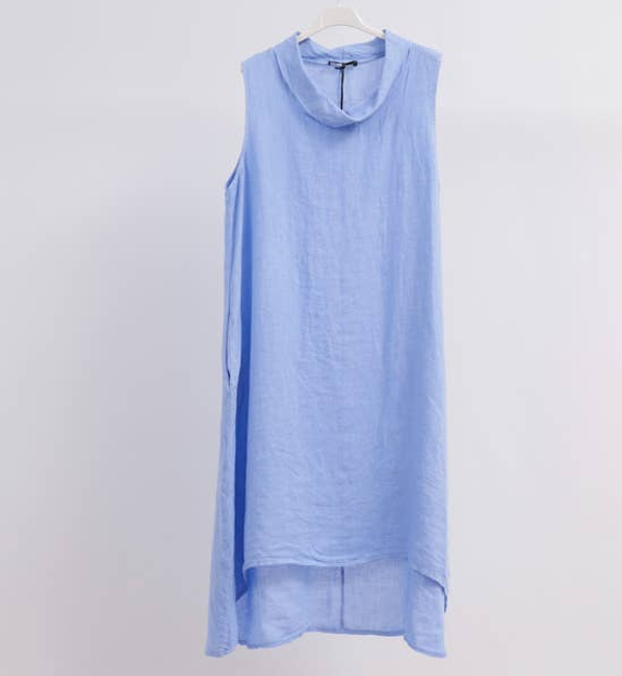 Mid-length flared linen dress 100% LINEN Made in Italy One size fits all