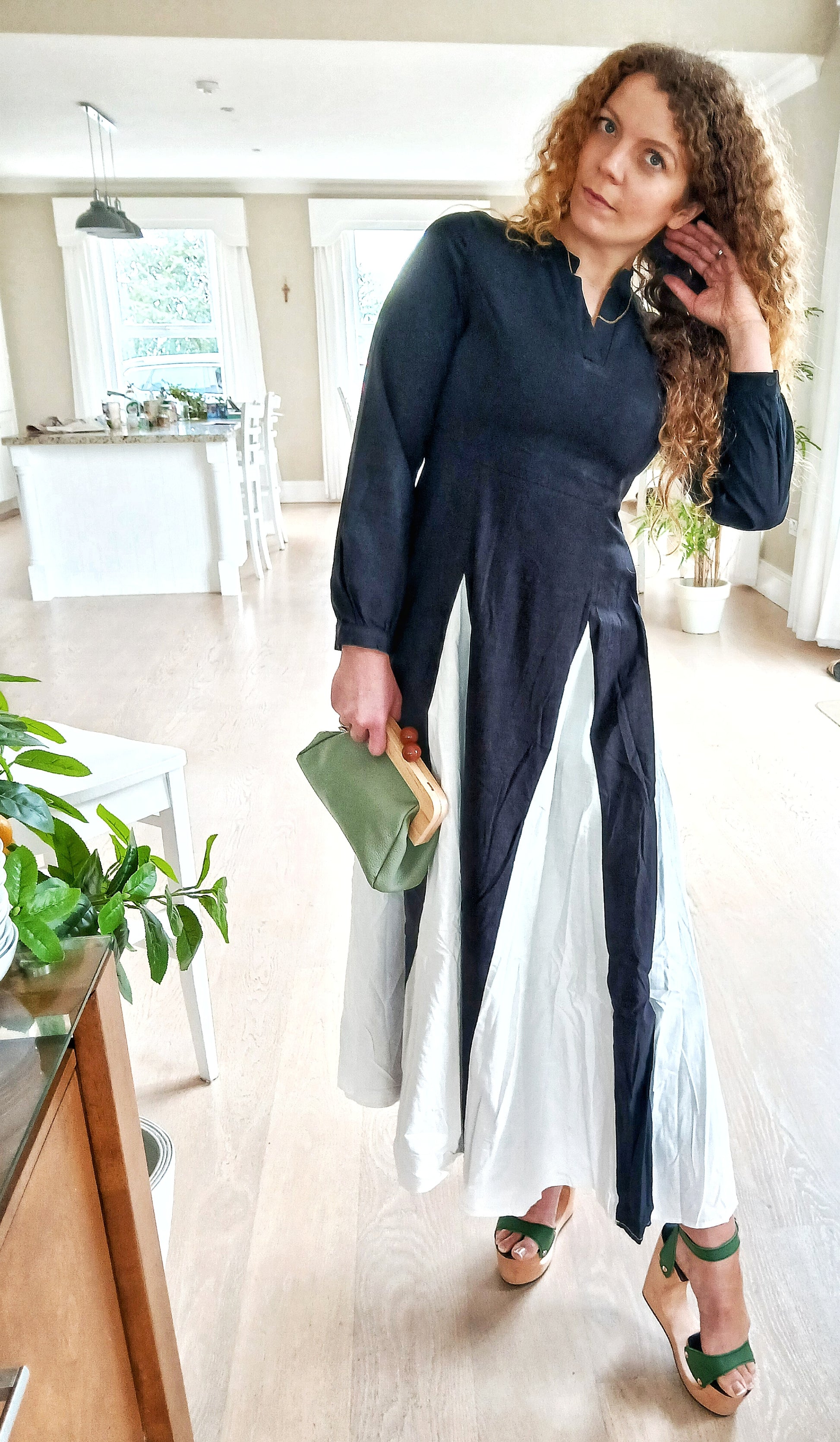 CHENSON & GORETT Women's Black Italian Leather Clutch Purse Bag with Click Closure in Wood