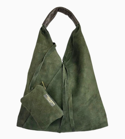 CHENSON & GORETT Women's Suede Leather Shoulder Bag with Purse Colour Green