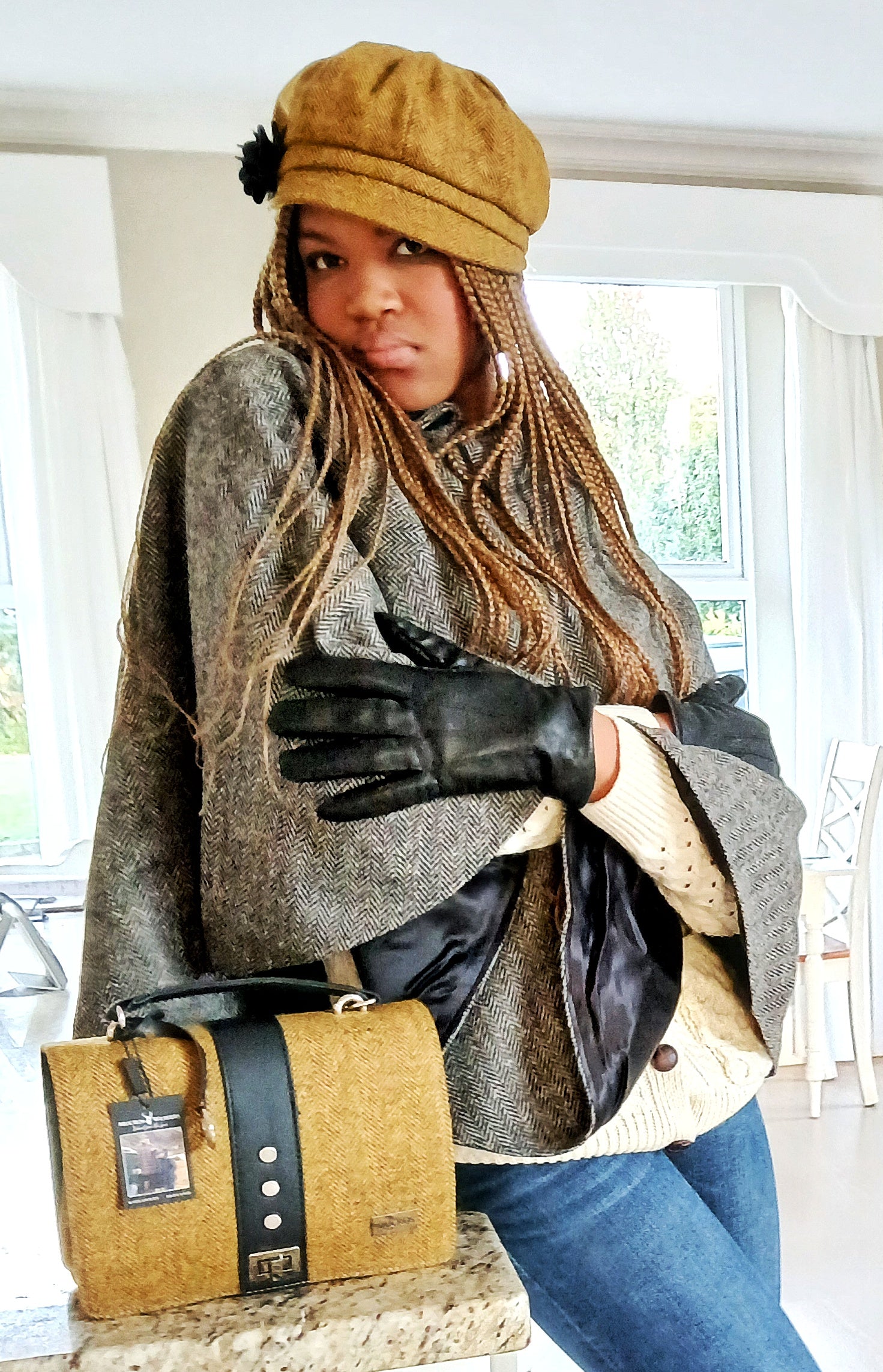 Ladies 100% Wool & leather bag with optional shoulder strap