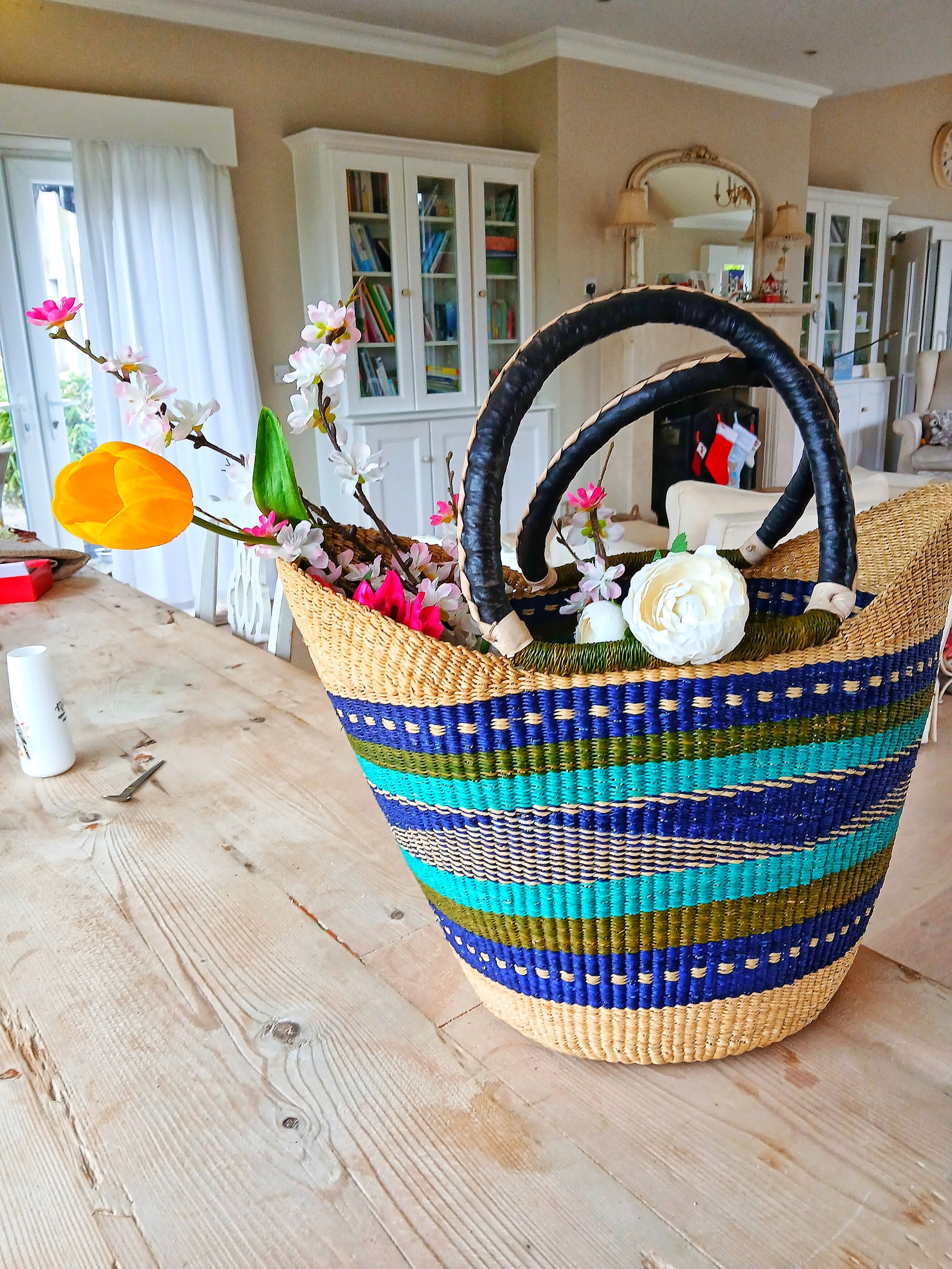 Large Green, Yellow & Blue Multi Colour U-Shopper Ghana Bolga Tote Bag/Basket (Copy)