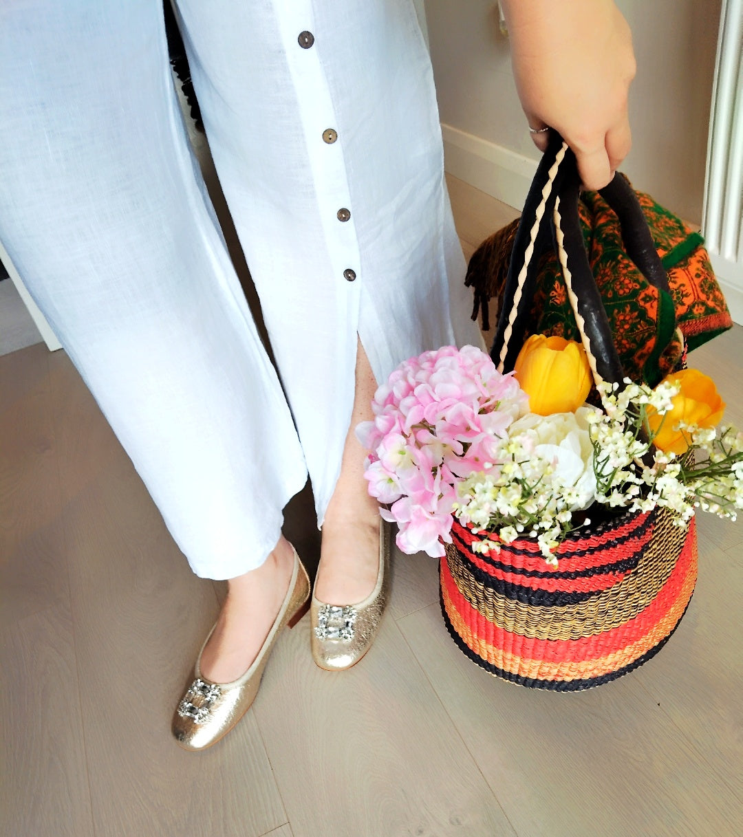 Artisans in the Bolgatanga region of Ghana weave these beautiful and durable shoppers from thick, tough elephant grass. Bolga baskets stand up to use and abuse and remain functional and beautiful for years. * Beach basket. it is the perfect size to fit towels, sunscreen, sandals, snacks and sunglasses. * Picnic baskets as they can easily fit a picnic blanket, drinks and snacks for the perfect picnic. * The leather wrapped handle adds to the durability. * Perfect for shopping at your favourite market * lovely decorative piece for the bohemian inspired home. * Approximate size: 17"-19" Across This item is fairly made in Africa and each artisans will use their earnings to put food on the table and pay educational expenses for their children. Basket Preparation: Spray water and let it air dry.