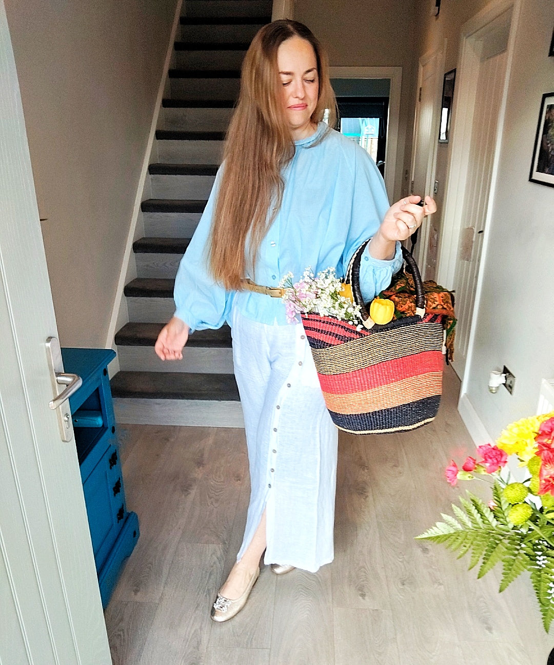 Large Red Multi Colours Bolga Handmade Durable Grass Rafia U shaped light Weight Shopping Basket