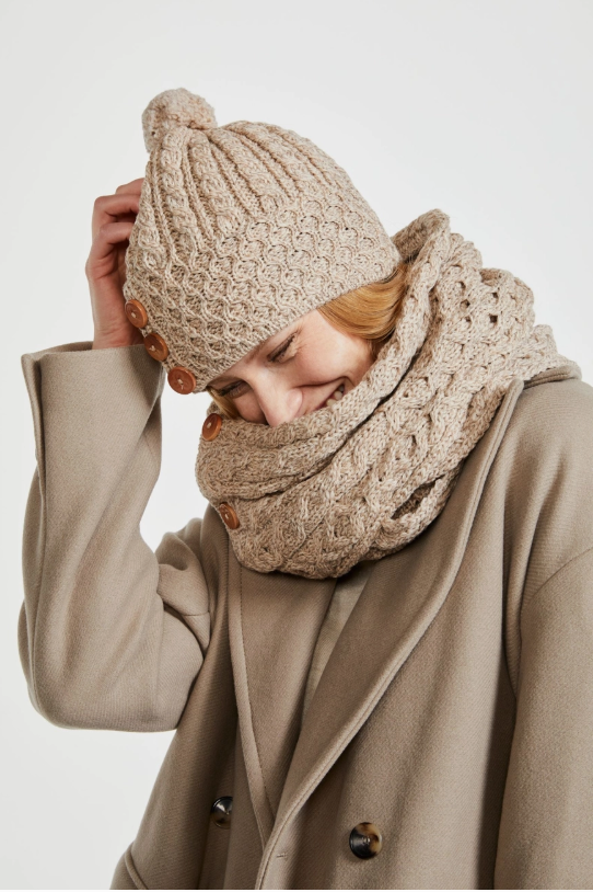 Stay warm with Aran wool this winter. Perfect for outdoor adventures, the Shrule Aran Hat is made with luxurious 100% Merino wool, giving you the extra warmth you need to escape the winter breeze.