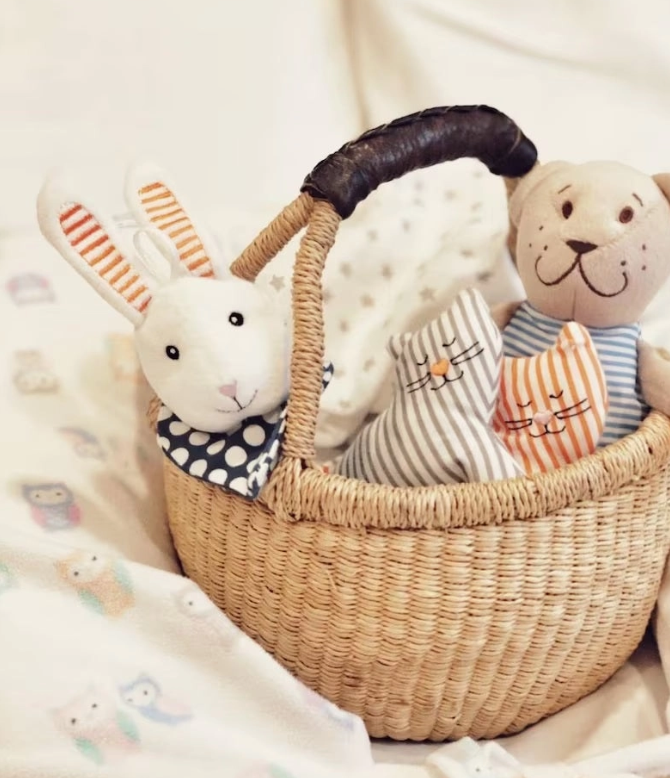 Small and Cute Plain Natural Raffia African Ghana Handmade Bolga Basket Leather Handle |Dye Free |7"-9"